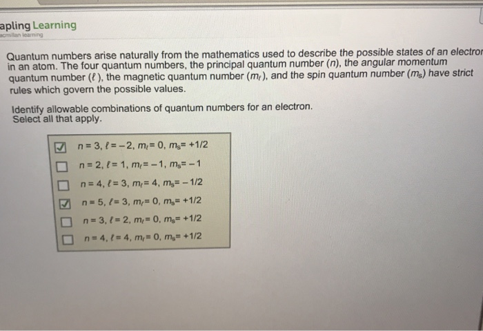 Solved Apling Learning Acnilian Learning Quantum Numbers Chegg Com